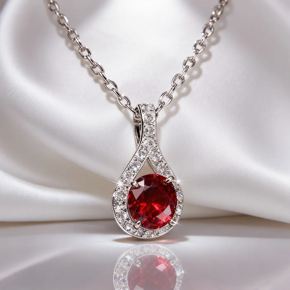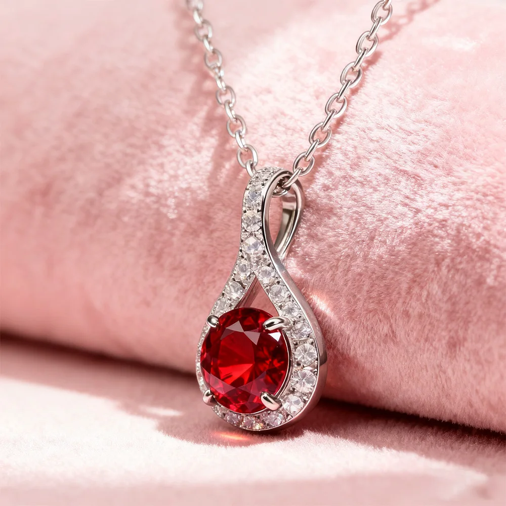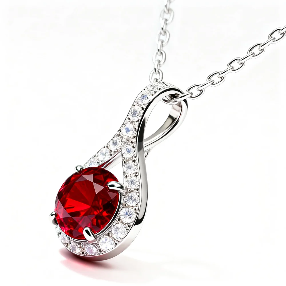 Creative Design D Color VVS Moissanite Pendant Round Shape Watermelon Red Stone Necklace Pendant for Jewelry